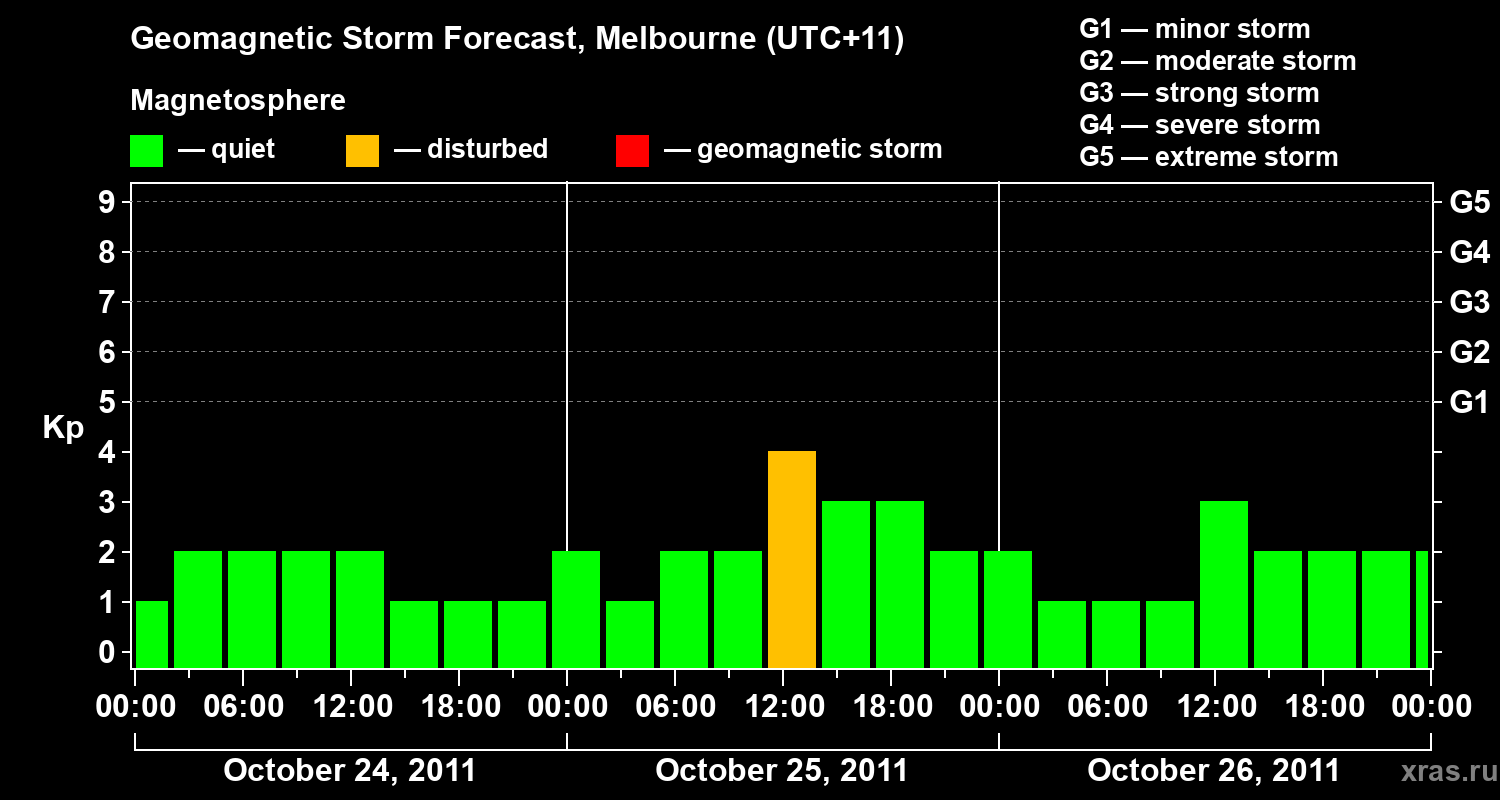 Geomagnetic storm forecast in Melbourne for Oct 24, 2011
