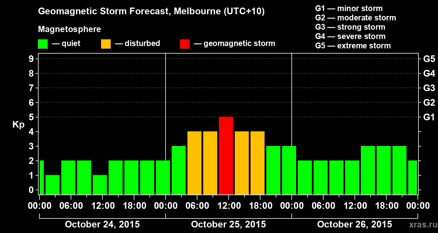 Geomagnetic storm forecast in Melbourne for Oct 24, 2015