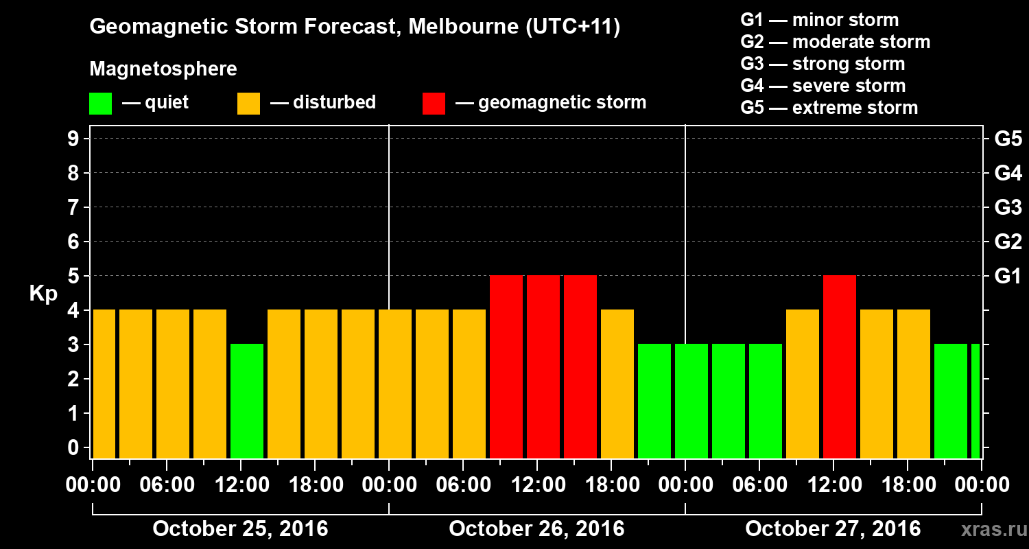 Geomagnetic storm forecast in Melbourne for Oct 25, 2016