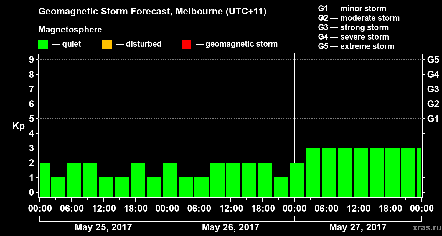 Geomagnetic activity forecast in Melbourne — May 25, 2017