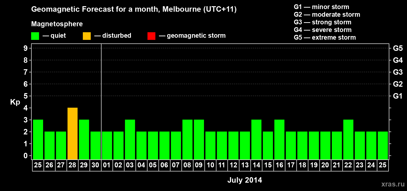 Geomagnetic storm forecast in Melbourne for Jun 25, 2014