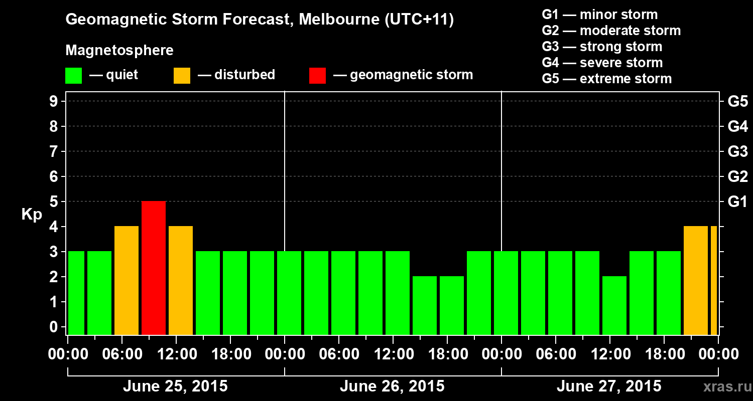 Geomagnetic storm forecast in Melbourne for Jun 25, 2015