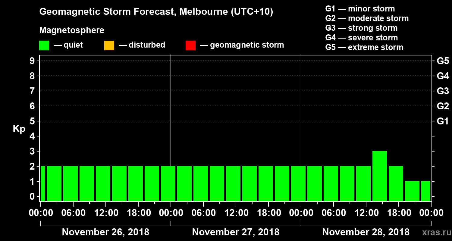 Geomagnetic activity forecast in Melbourne — Nov 26, 2018
