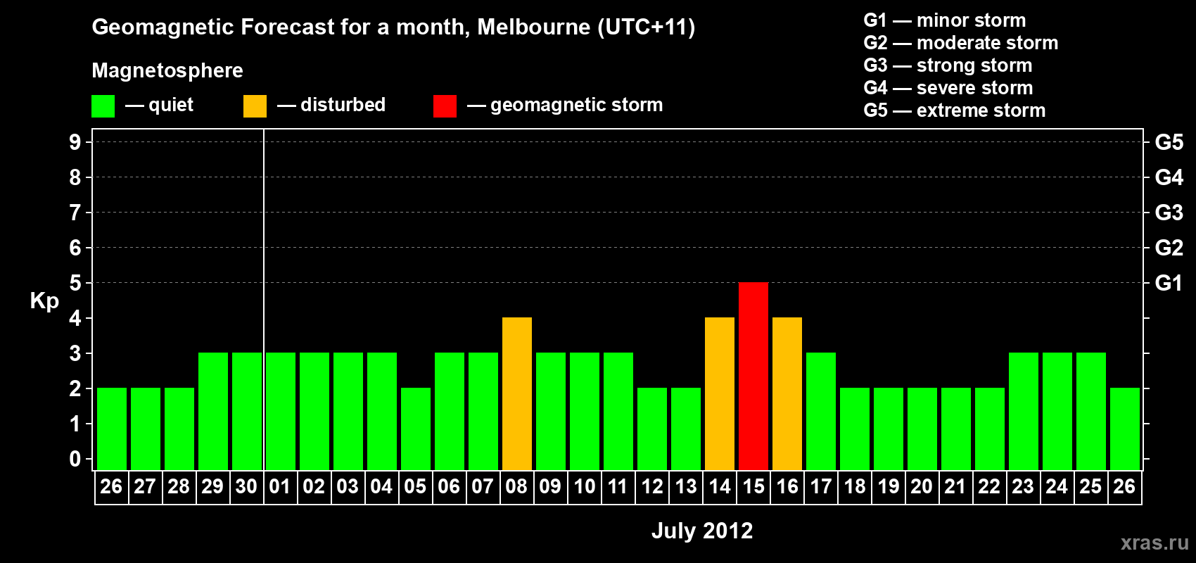 Geomagnetic storm forecast in Melbourne for Jun 26, 2012