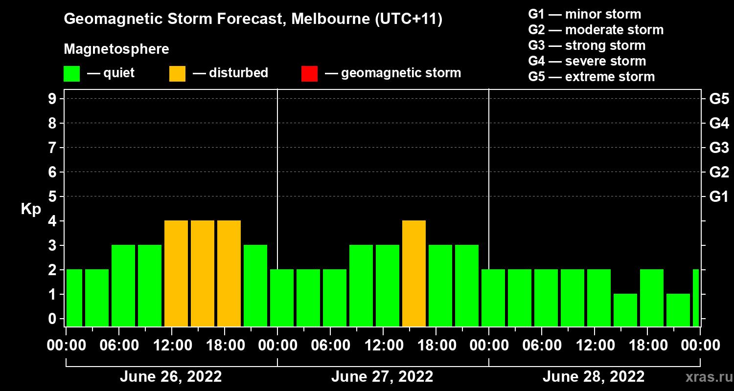 Geomagnetic activity forecast in Melbourne — Jun 26, 2022