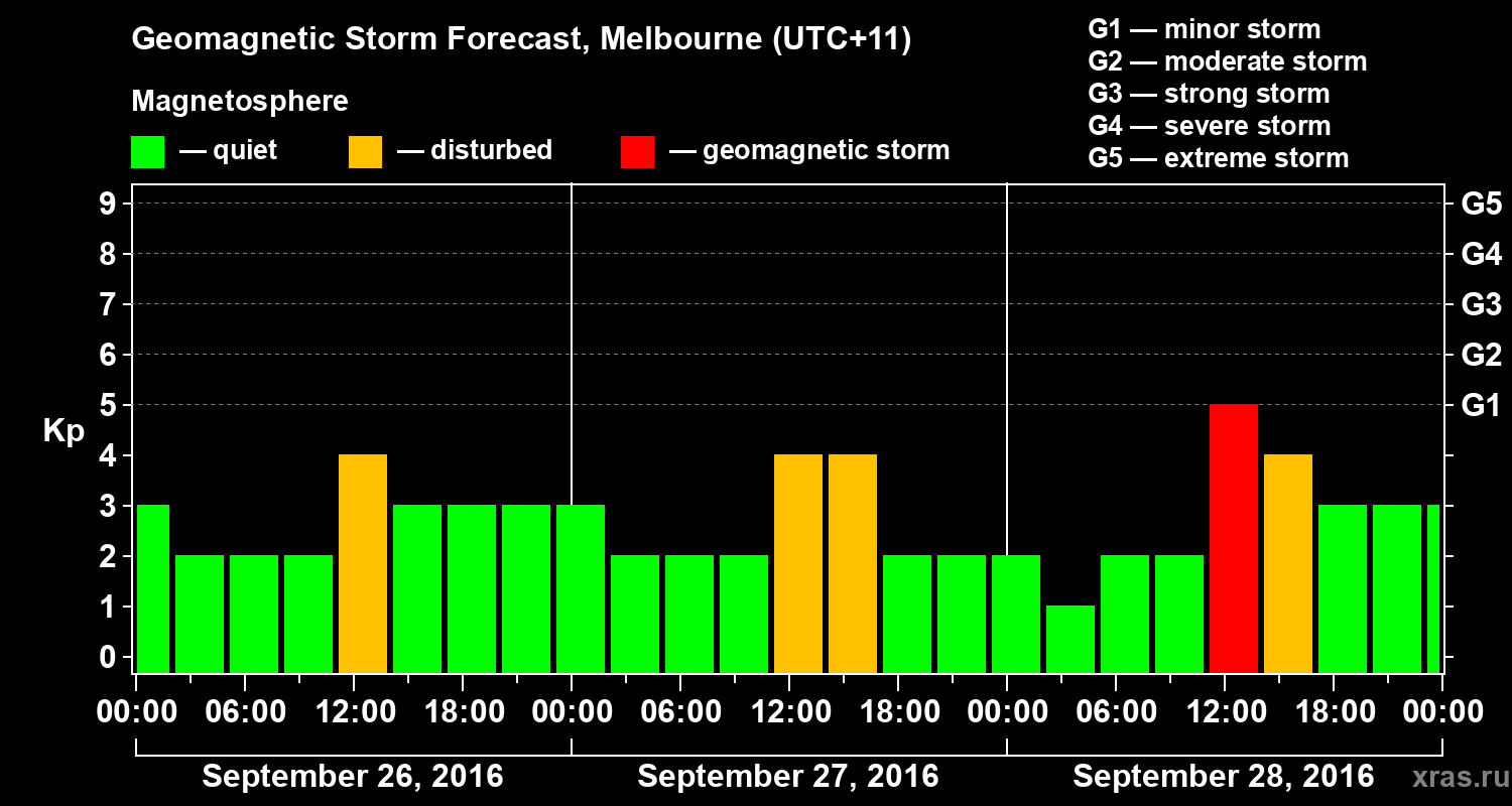 Geomagnetic storm forecast in Melbourne for Sep 26, 2016