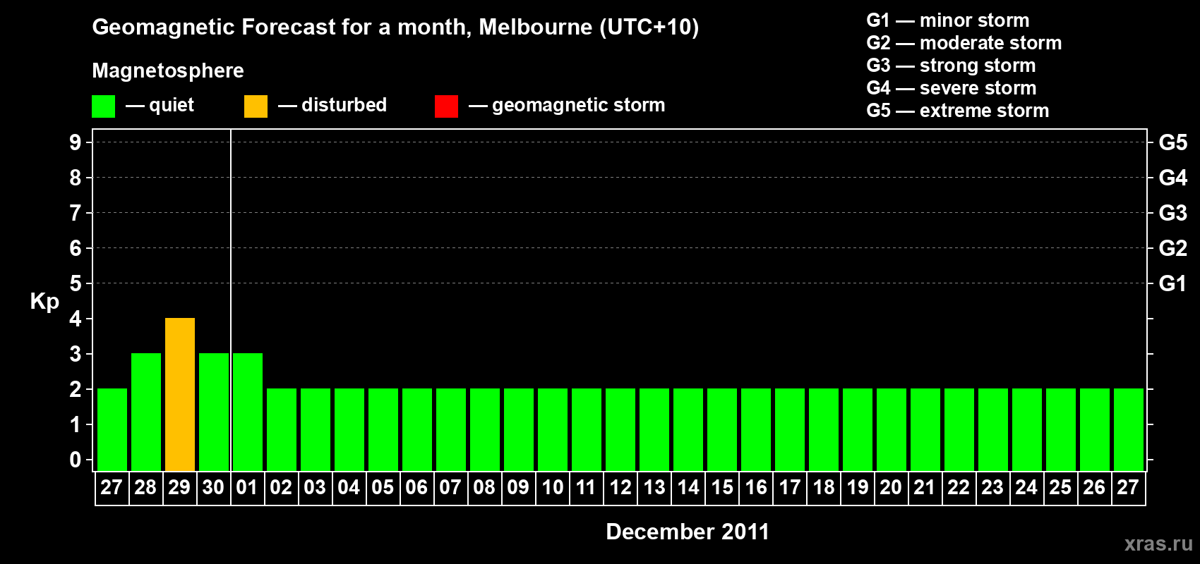 Geomagnetic storm forecast in Melbourne for Nov 27, 2011
