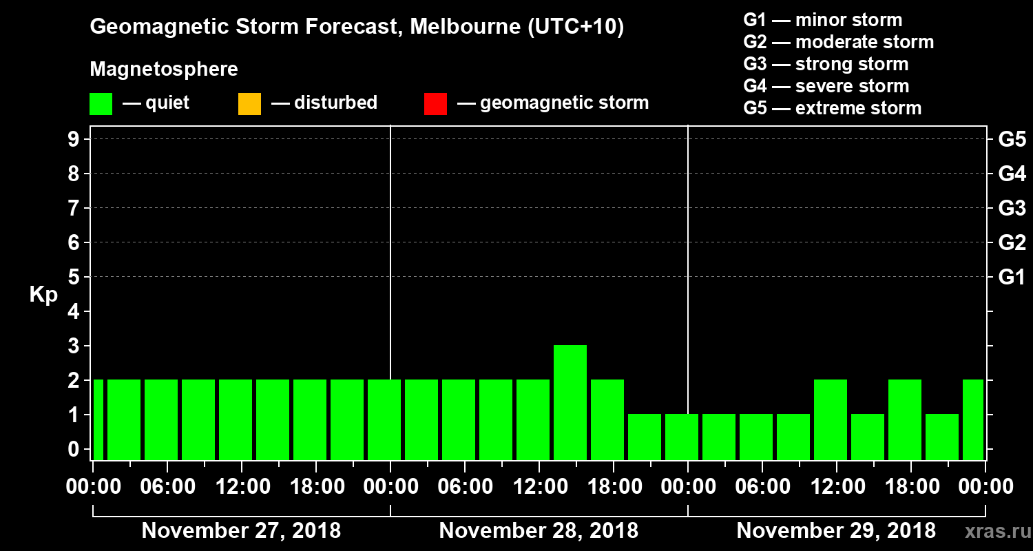 Geomagnetic storm forecast in Melbourne for Nov 27, 2018