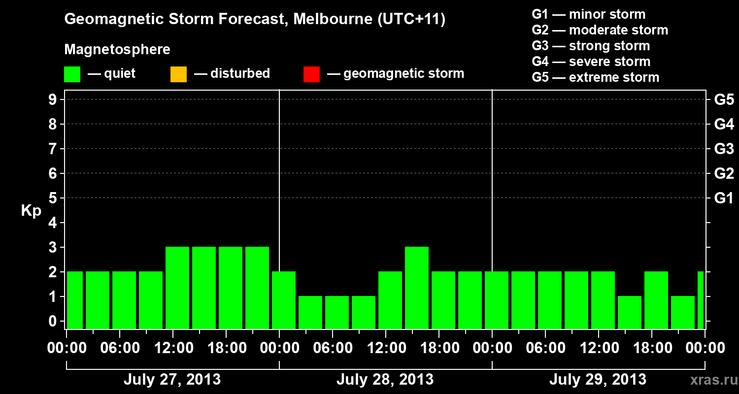 Geomagnetic storm forecast in Melbourne for Jul 27, 2013