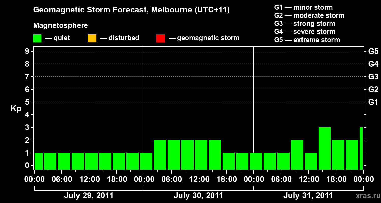Geomagnetic storm forecast in Melbourne for Jul 29, 2011