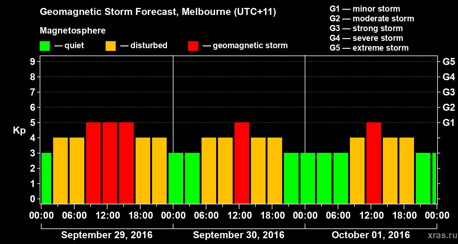 Geomagnetic storm forecast in Melbourne for Sep 29, 2016