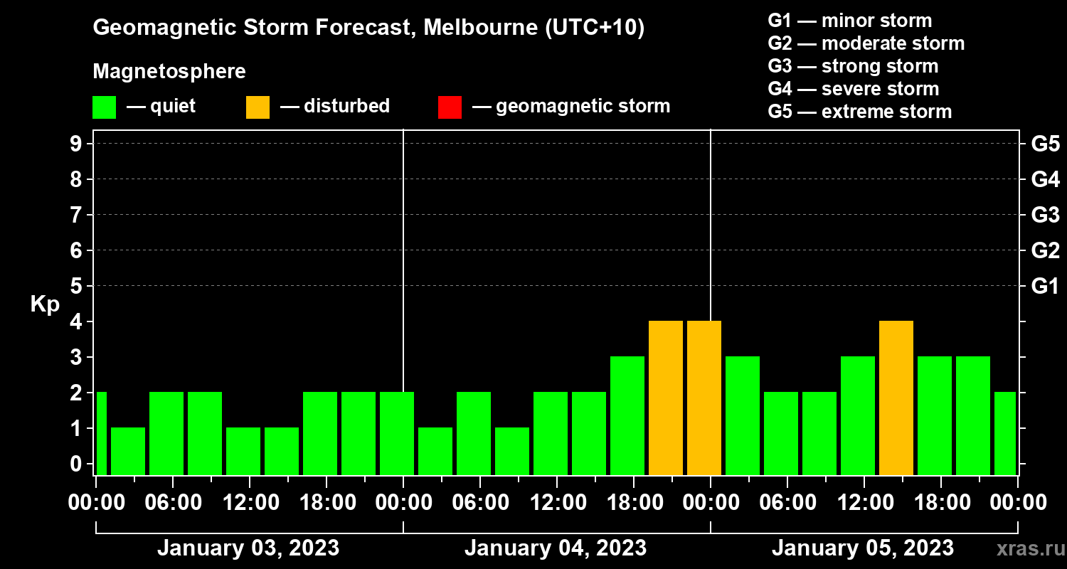 Geomagnetic activity forecast in Melbourne — Jan 03, 2023