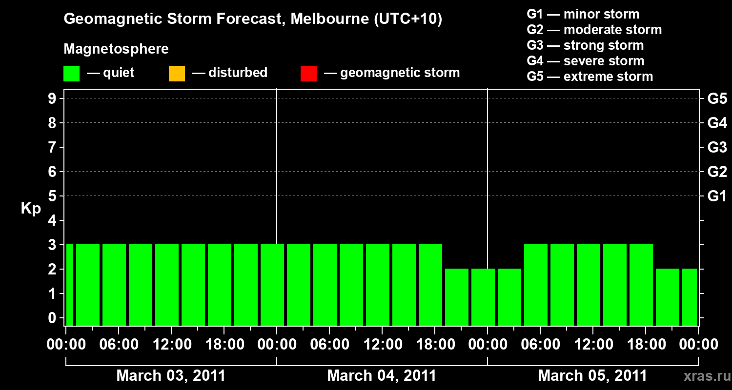 Geomagnetic storm forecast in Melbourne for Mar 03, 2011