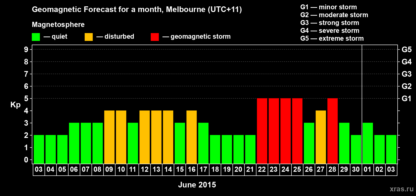 Geomagnetic storm forecast in Melbourne for Jun 03, 2015