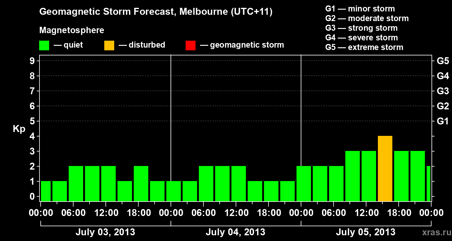 Geomagnetic storm forecast in Melbourne for Jul 03, 2013
