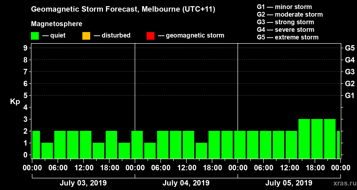 Geomagnetic storm forecast in Melbourne for Jul 03, 2019