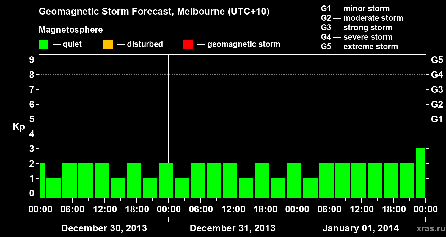 Geomagnetic storm forecast in Melbourne for Dec 30, 2013