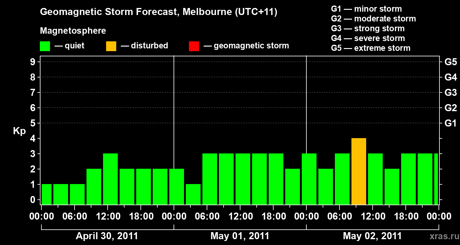 Geomagnetic storm forecast in Melbourne for Apr 30, 2011