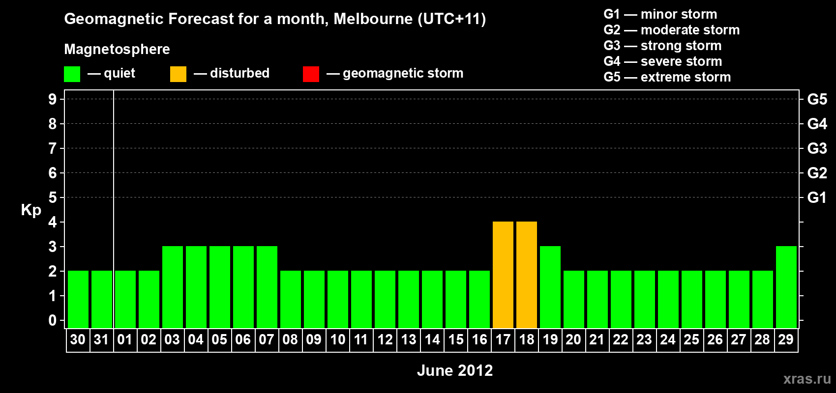 Geomagnetic storm forecast in Melbourne for May 30, 2012