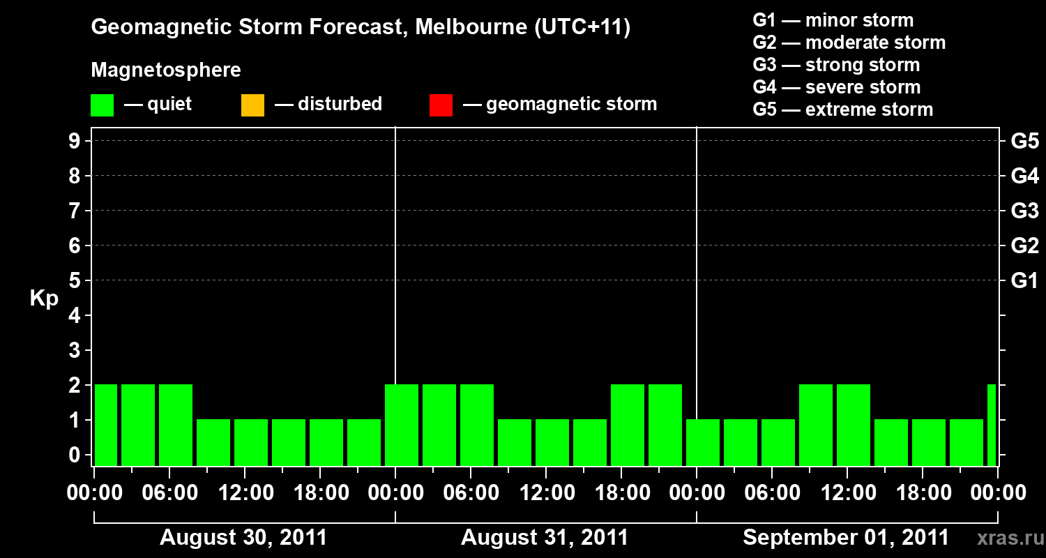 Geomagnetic storm forecast in Melbourne for Aug 30, 2011