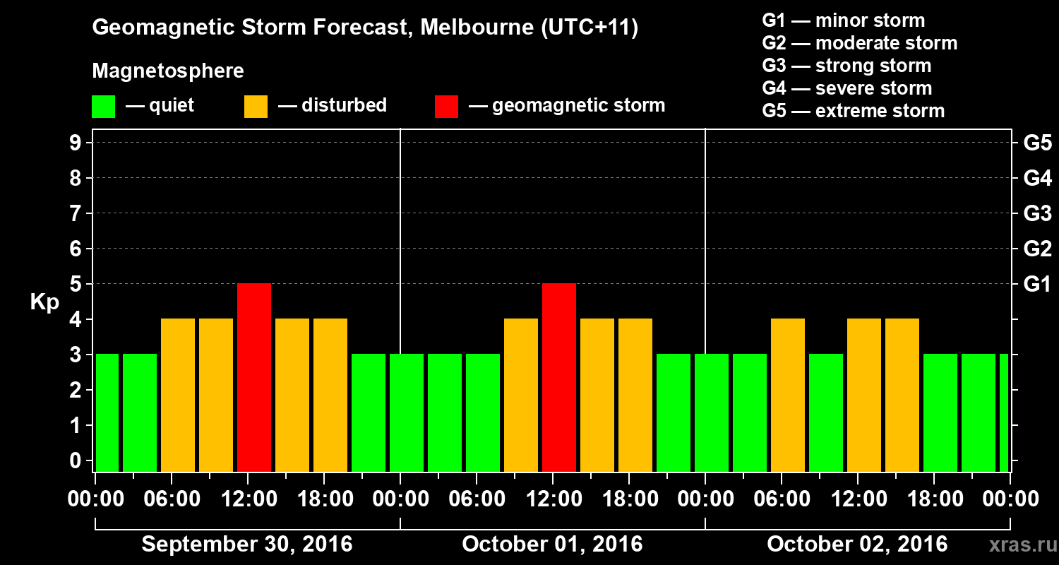 Geomagnetic storm forecast in Melbourne for Sep 30, 2016