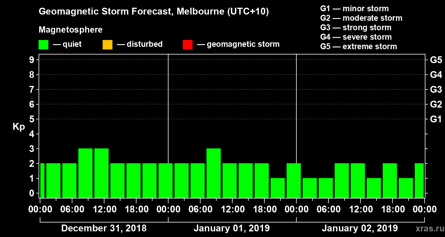 Geomagnetic storm forecast in Melbourne for Dec 31, 2018