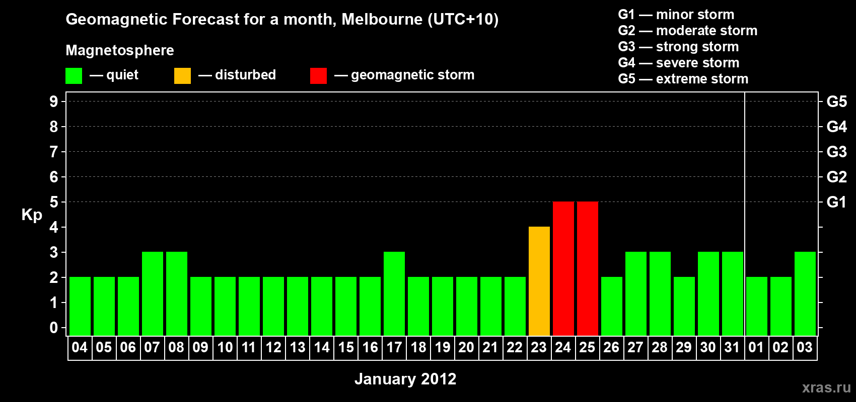 Geomagnetic storm forecast in Melbourne for Jan 04, 2012
