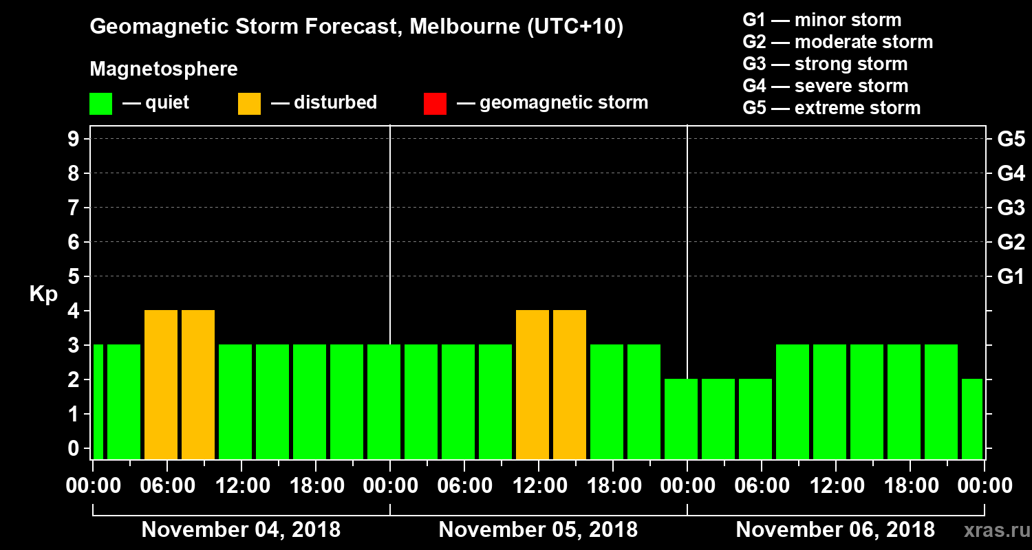 Geomagnetic activity forecast in Melbourne — Nov 04, 2018