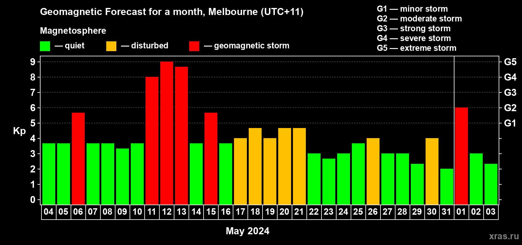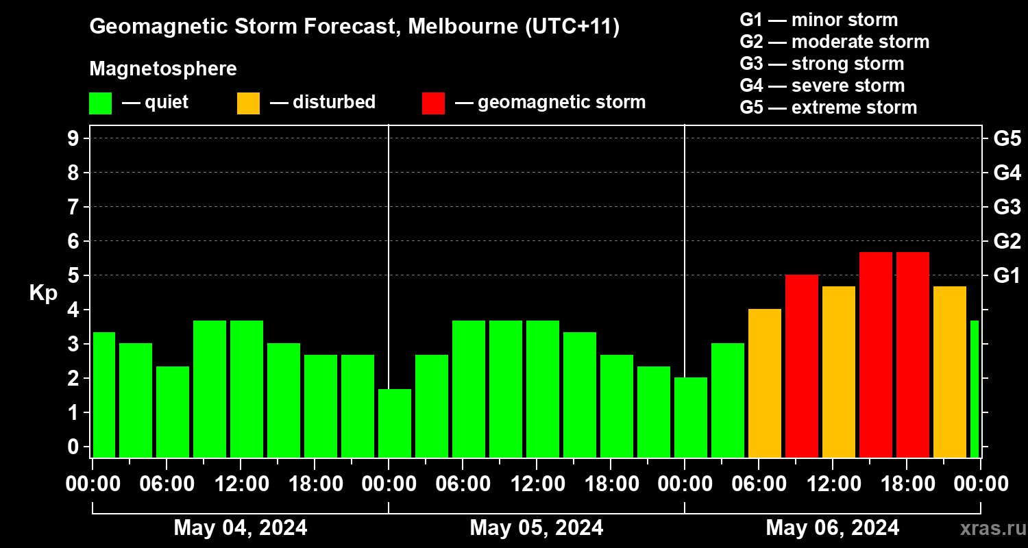 Geomagnetic storm forecast in Melbourne for May 04, 2024