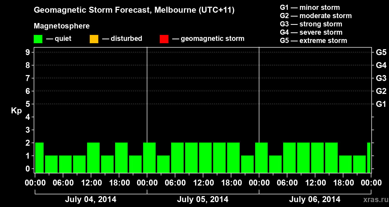 Geomagnetic storm forecast in Melbourne for Jul 04, 2014