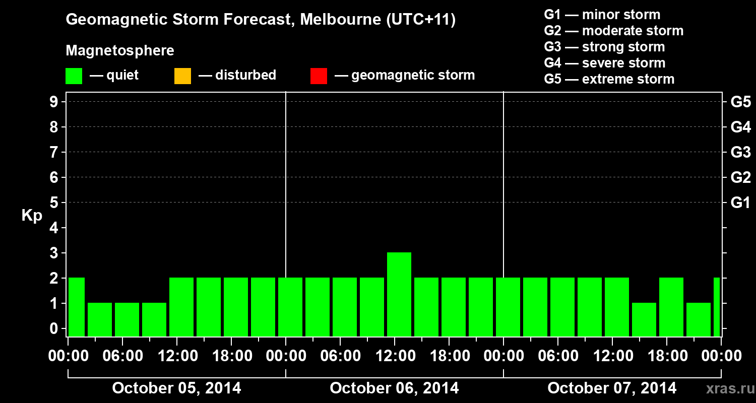 Geomagnetic storm forecast in Melbourne for Oct 05, 2014