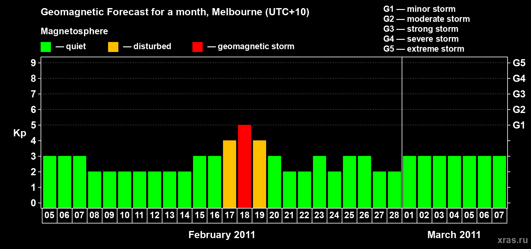 Geomagnetic storm forecast in Melbourne for Feb 05, 2011