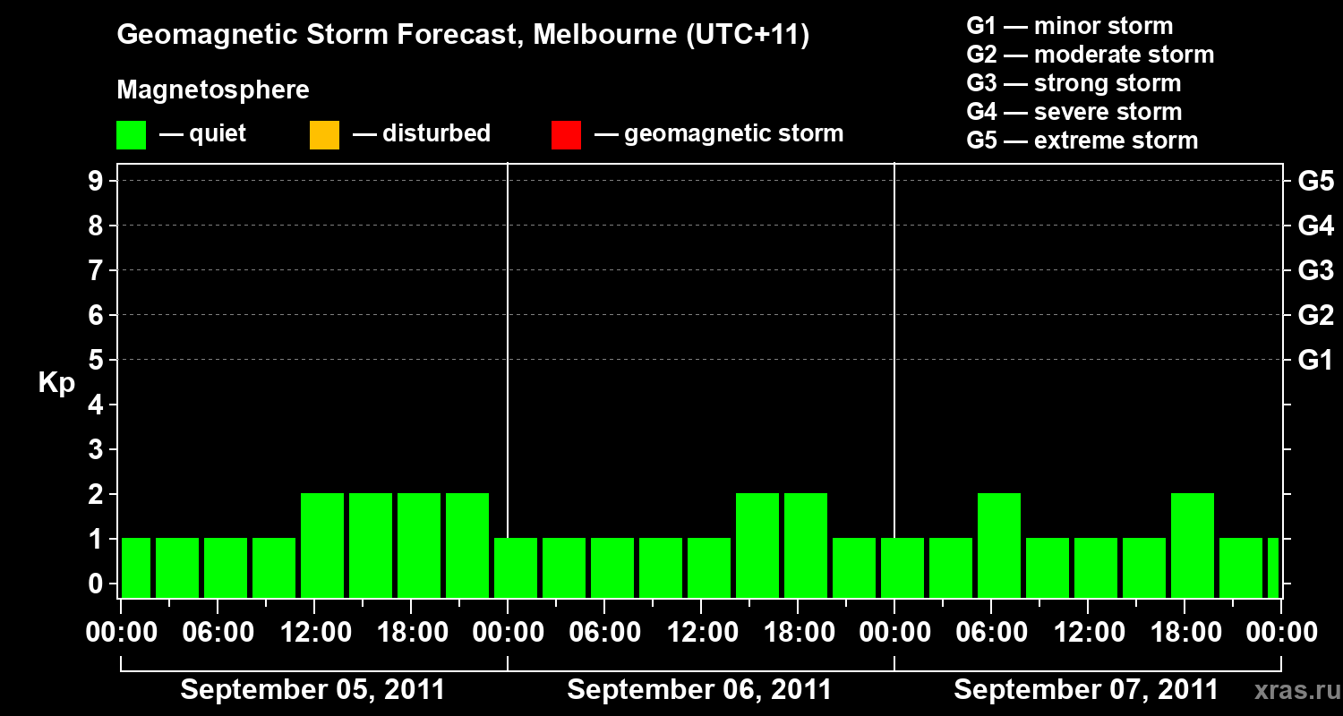 Geomagnetic storm forecast in Melbourne for Sep 05, 2011