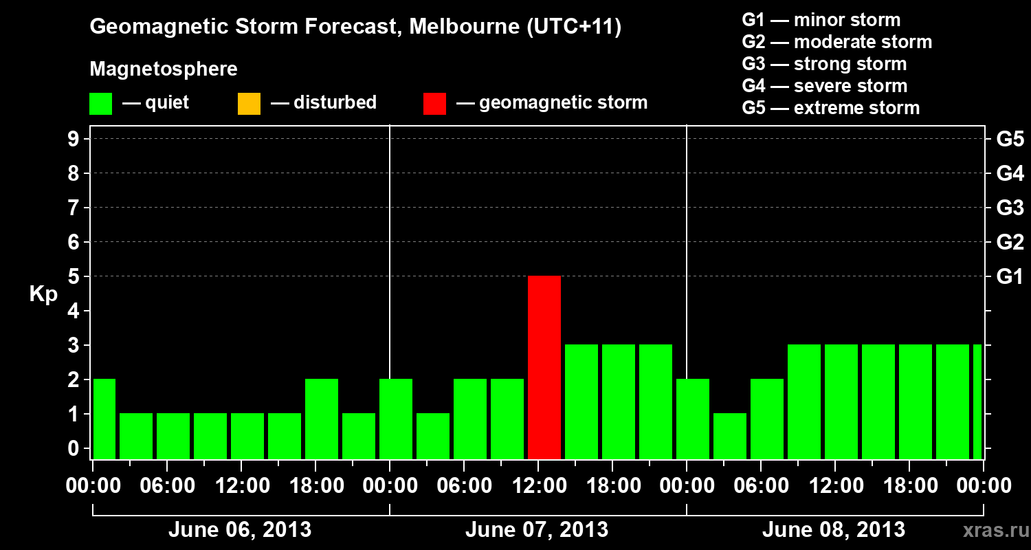 Geomagnetic storm forecast in Melbourne for Jun 06, 2013