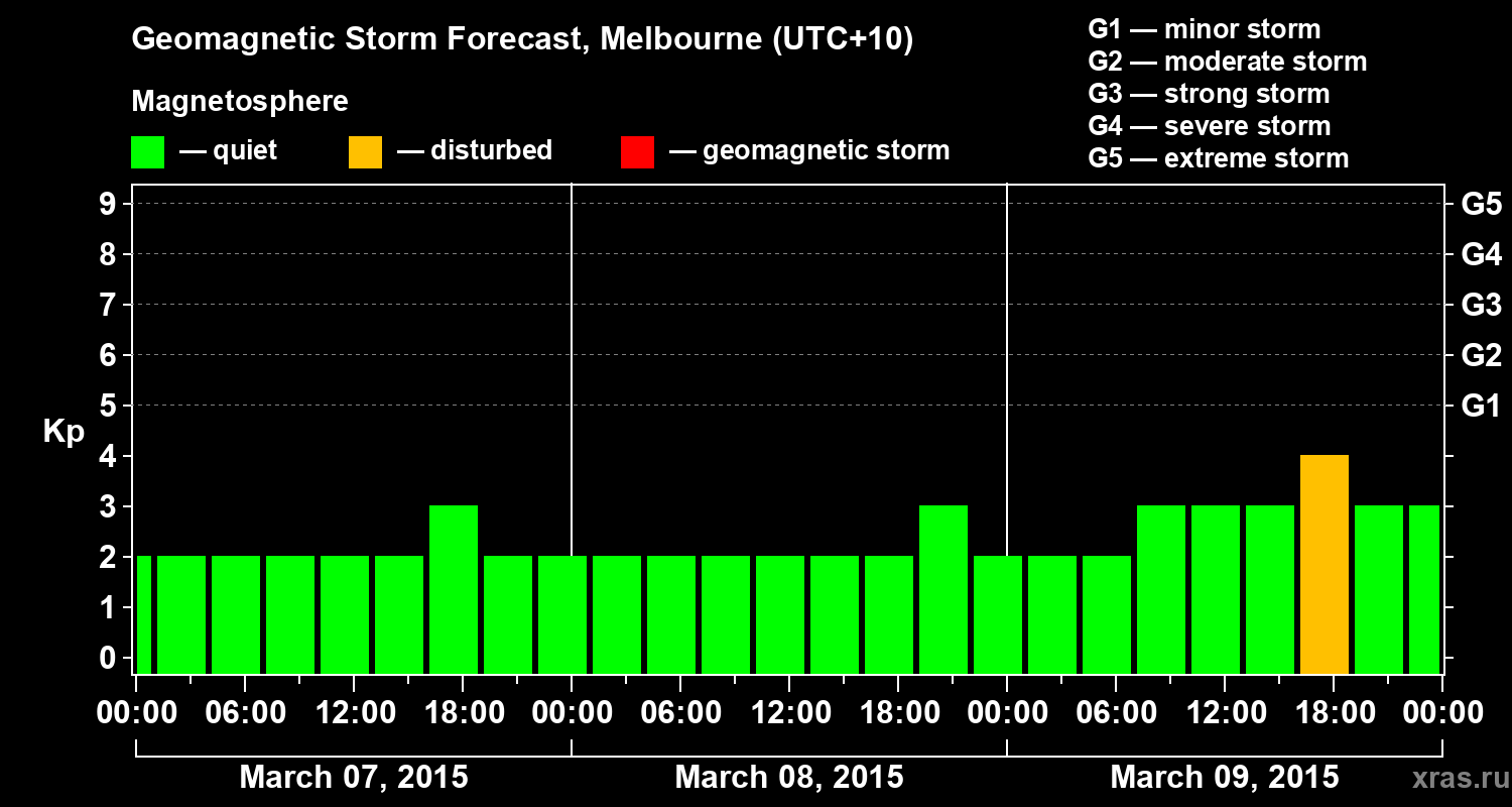 Geomagnetic storm forecast in Melbourne for Mar 07, 2015