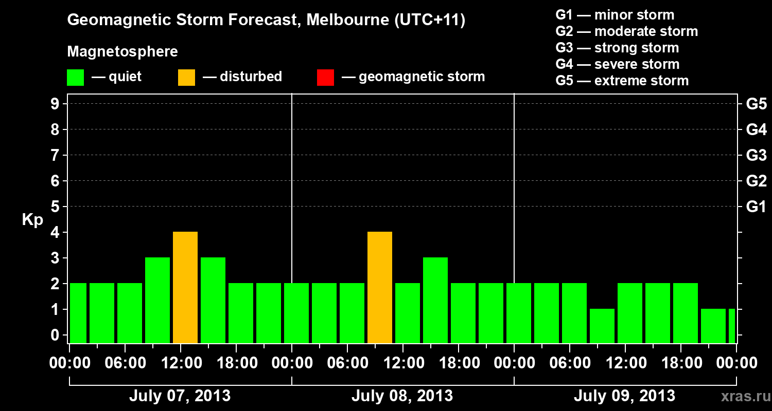 Geomagnetic storm forecast in Melbourne for Jul 07, 2013
