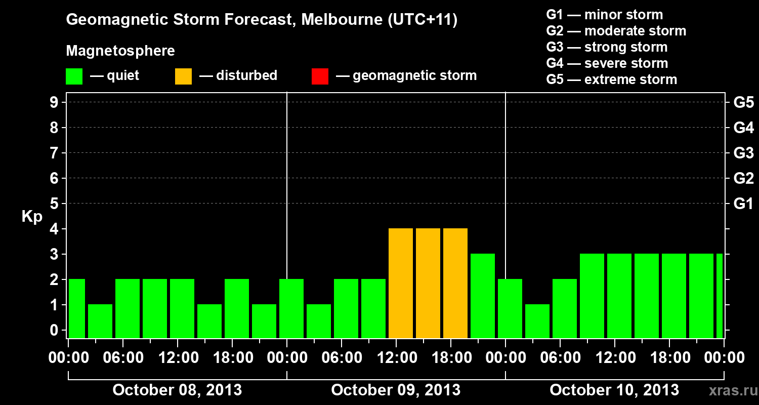 Geomagnetic storm forecast in Melbourne for Oct 08, 2013
