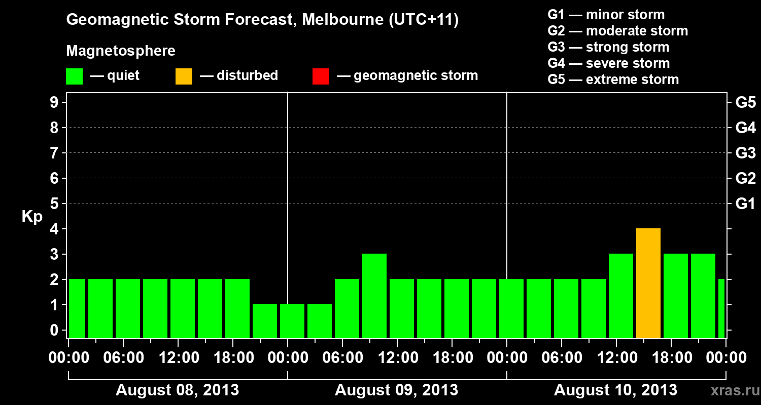 Geomagnetic storm forecast in Melbourne for Aug 08, 2013