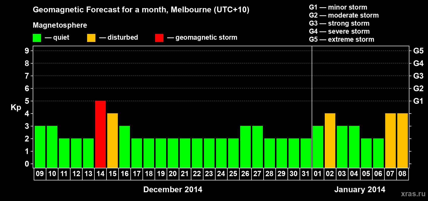 Geomagnetic storm forecast in Melbourne for Dec 09, 2013