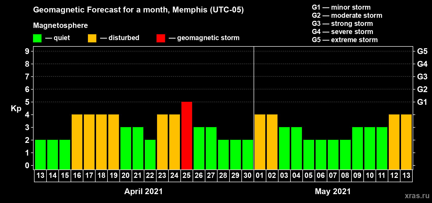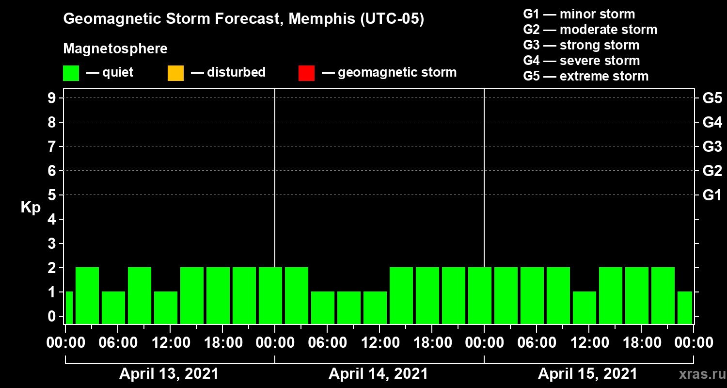 Geomagnetic storm forecast in Memphis for Apr 13, 2021