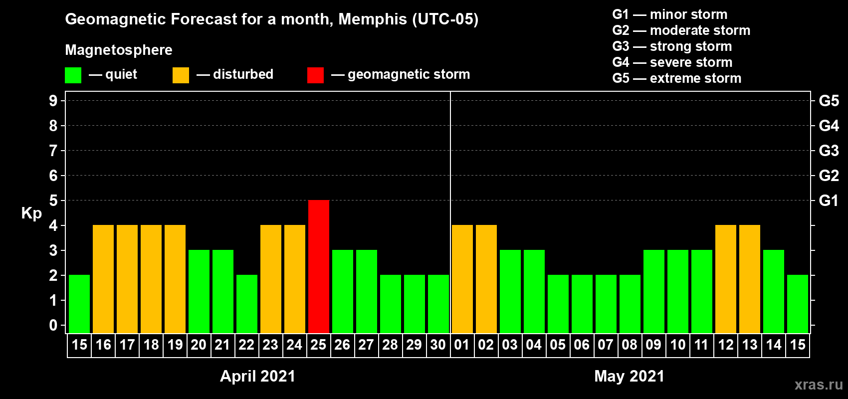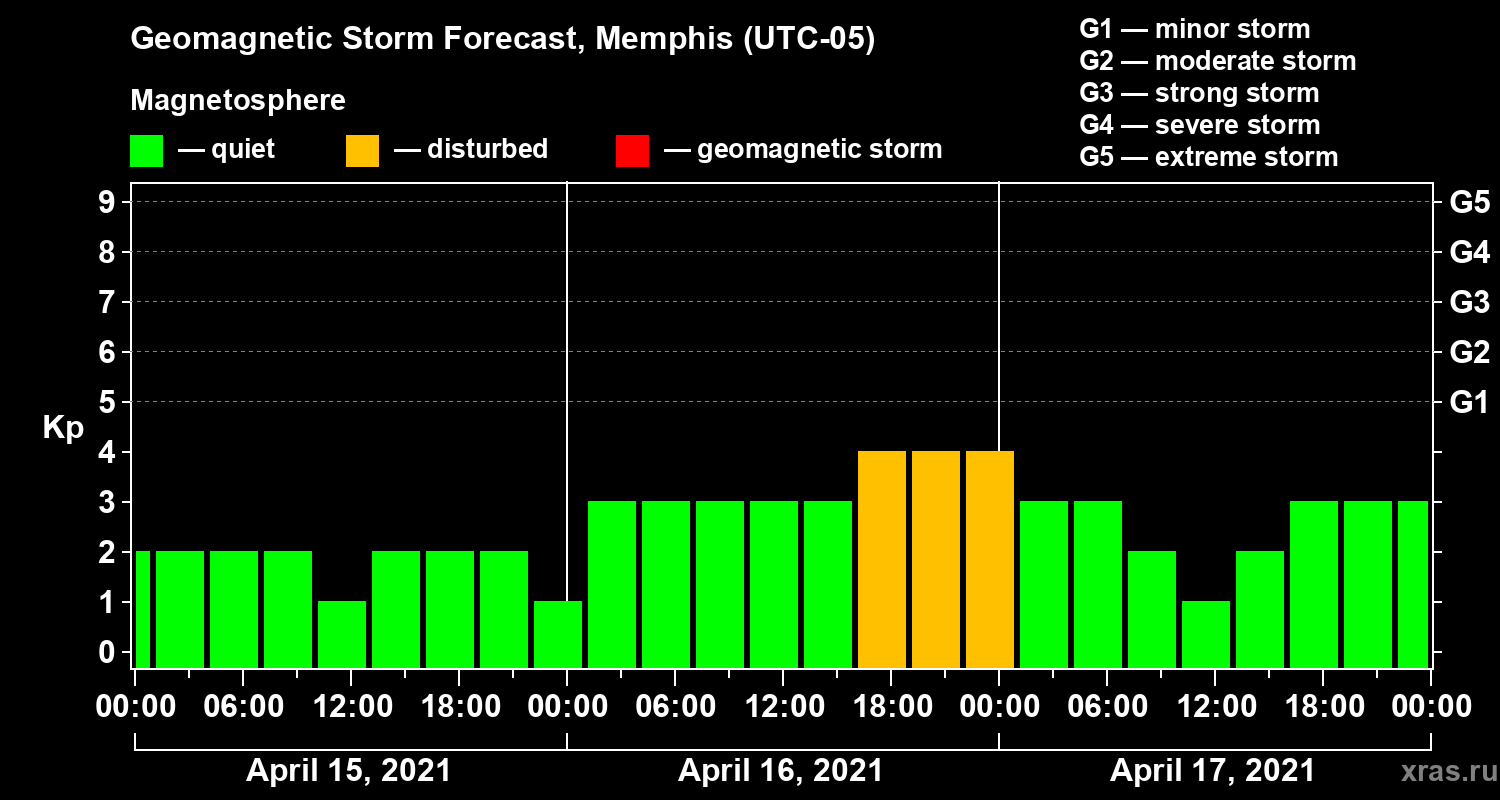 Geomagnetic storm forecast in Memphis for Apr 15, 2021