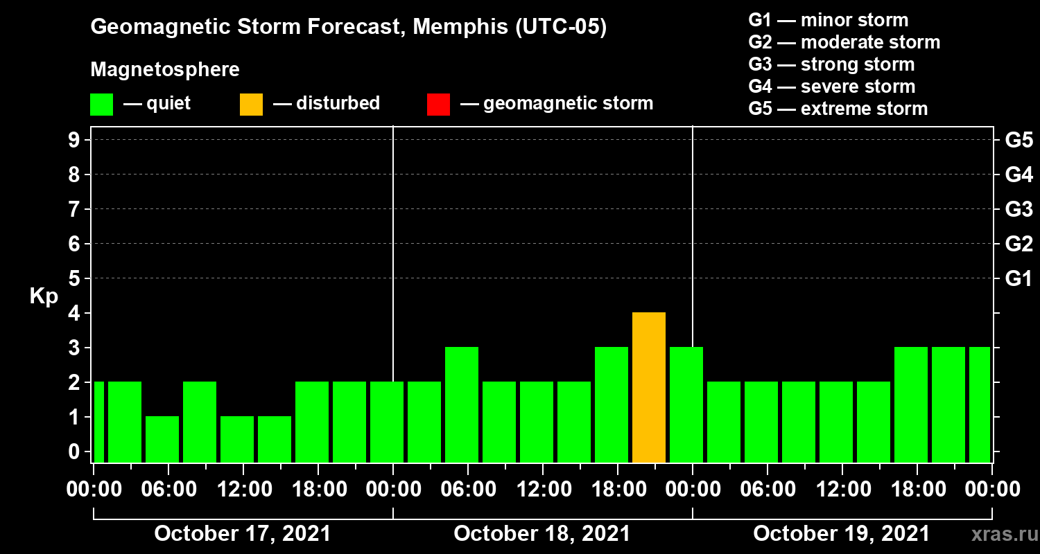 Geomagnetic activity forecast in Memphis — Oct 17, 2021