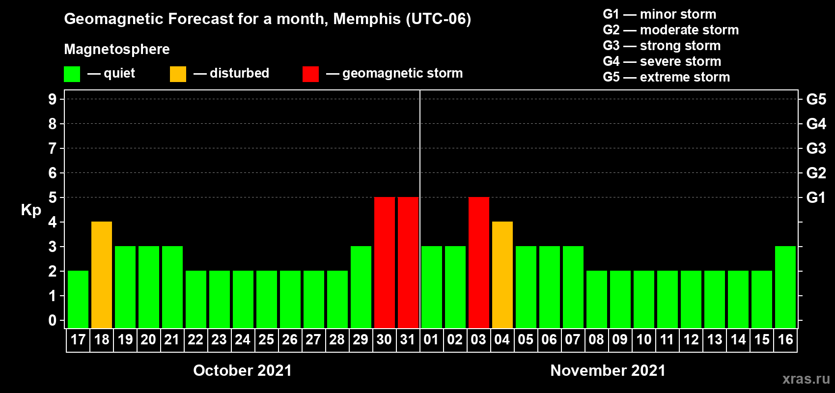 Geomagnetic storm forecast in Memphis for Oct 17, 2021