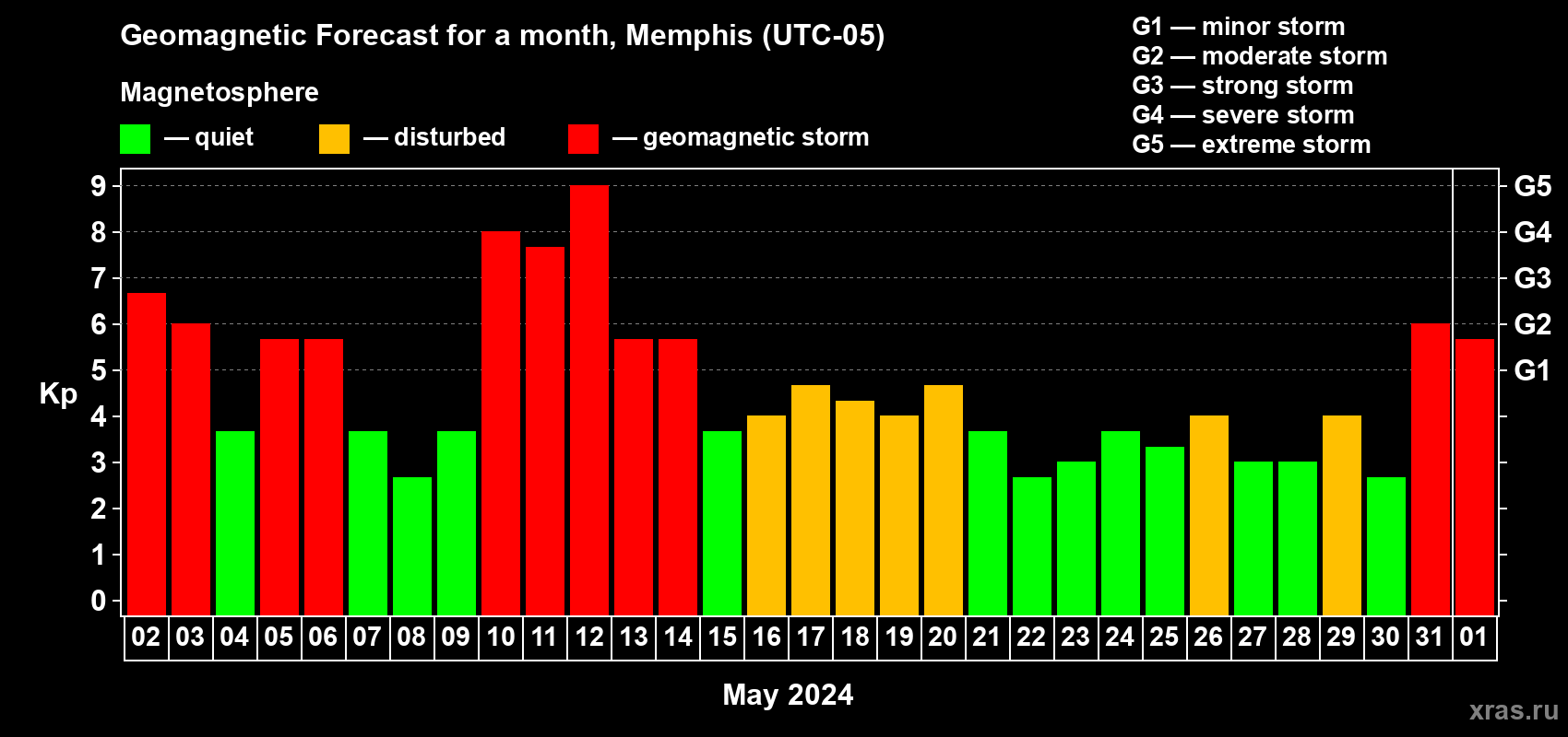 Geomagnetic storm forecast in Memphis for May 02, 2024