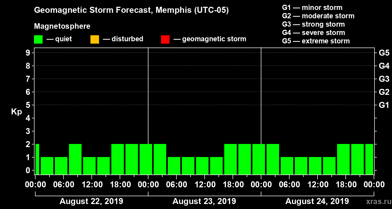 Geomagnetic activity forecast in Memphis — Aug 22, 2019
