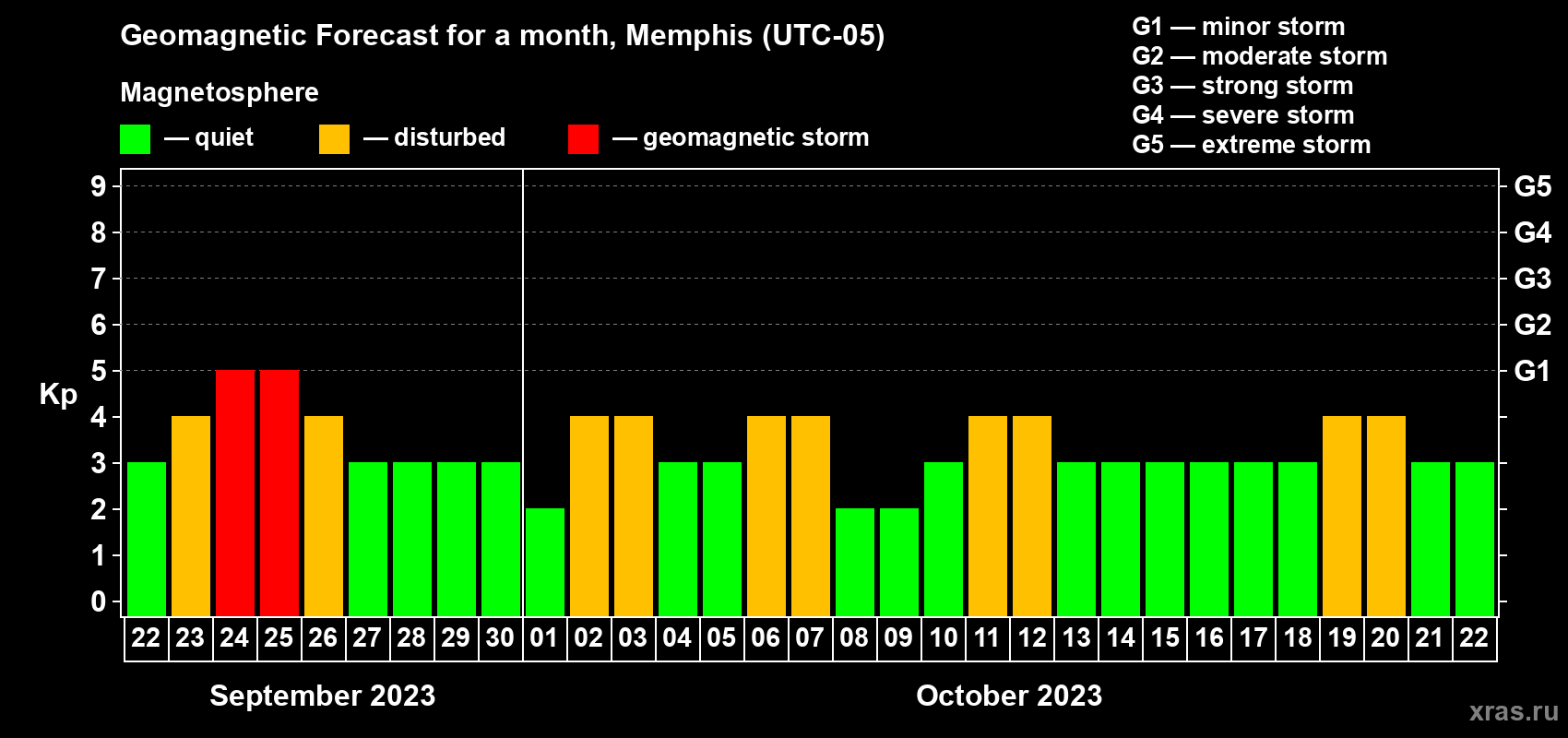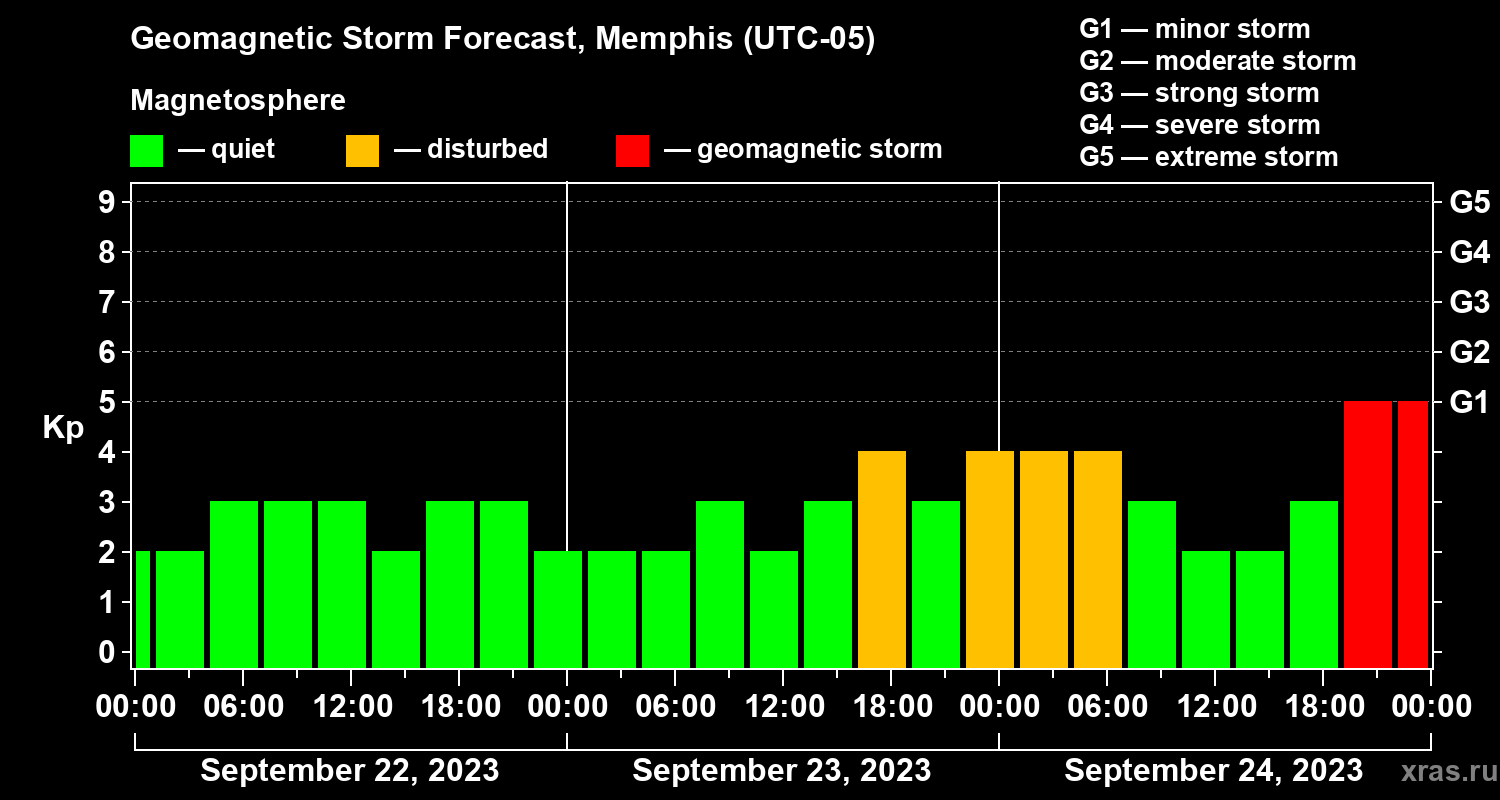 Geomagnetic storm forecast in Memphis for Sep 22, 2023