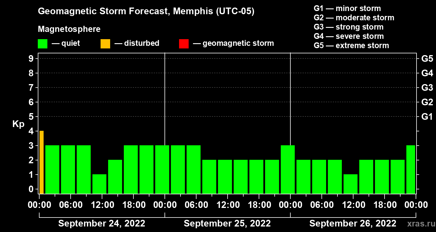 Geomagnetic storm forecast in Memphis for Sep 24, 2022