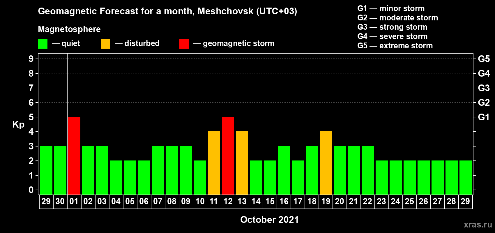 Geomagnetic storm forecast in Meshchovsk for Sep 29, 2021