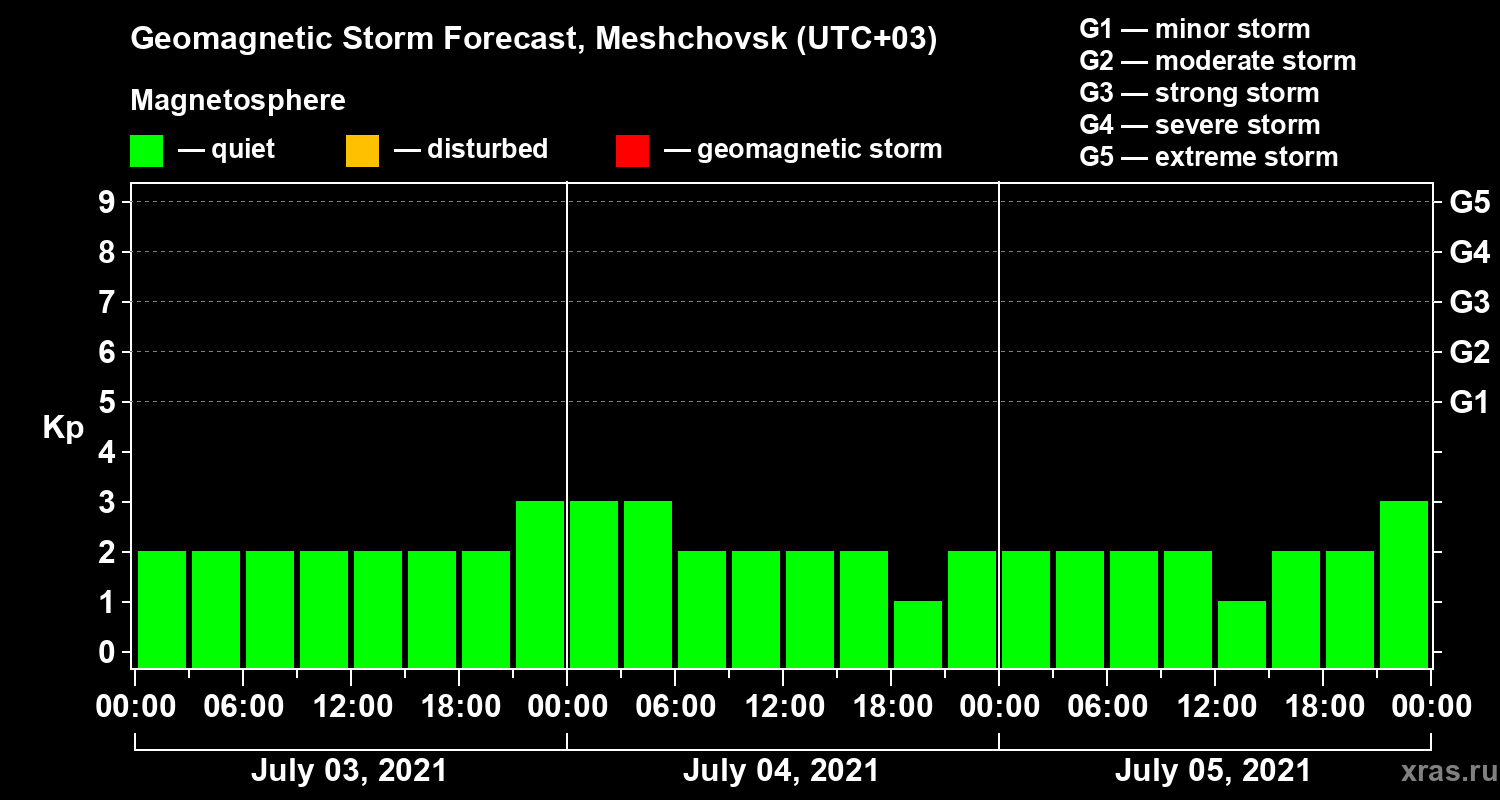 Geomagnetic storm forecast in Meshchovsk for Jul 03, 2021