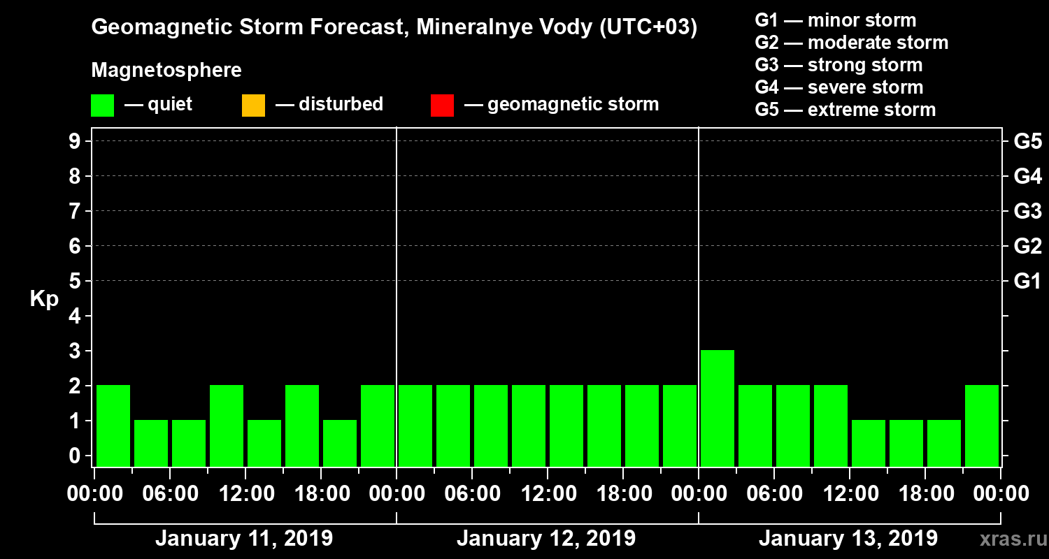 Geomagnetic storm forecast in Mineralnye Vody for Jan 11, 2019